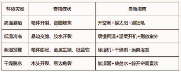 音箱不是块砖,冷热干湿都敏感。