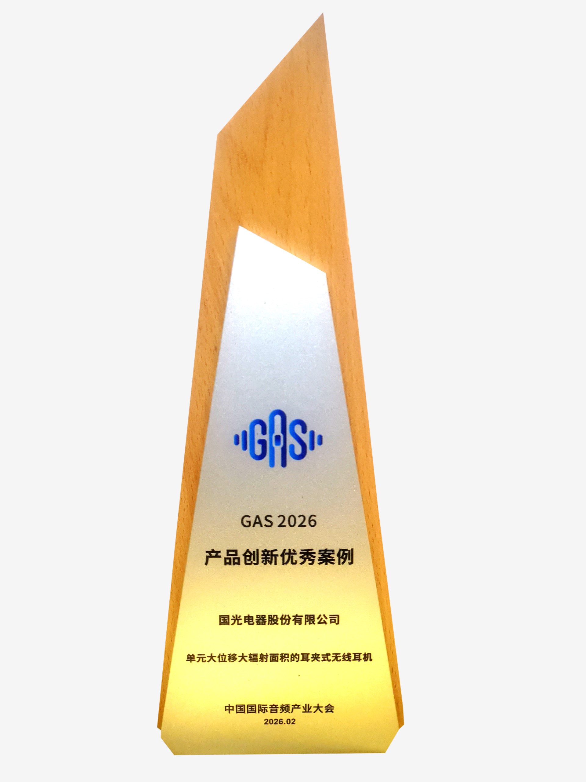 近期,2026中国国际音频产业大会(GAS)“消费电子科创优秀案例”获选名单重磅揭晓!国光电器自主研发的创新技术“扬声器低碳复合纸盆及其应用”荣获“技术创新优秀案例”,自主研发的创新产品“单元大位移大辐射面积的耳夹式无线耳机”荣获“产品创新优秀案例”。
